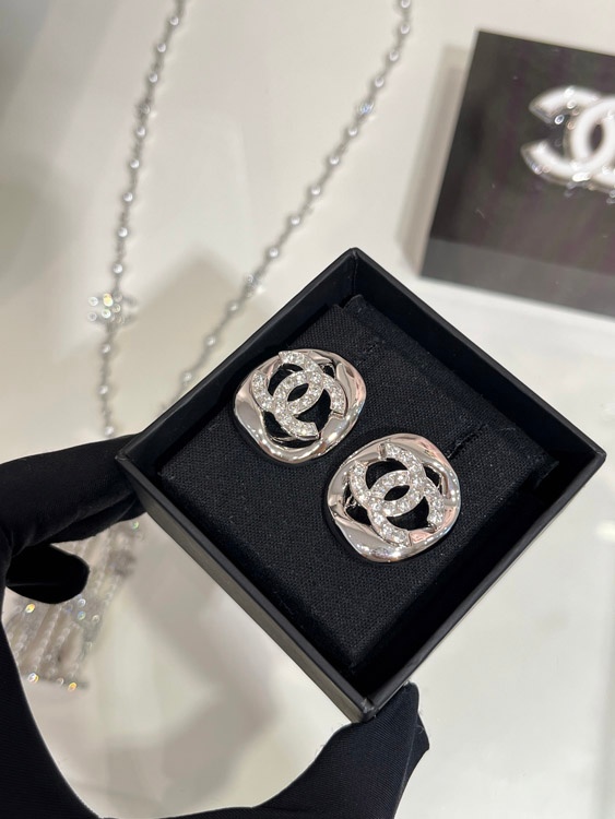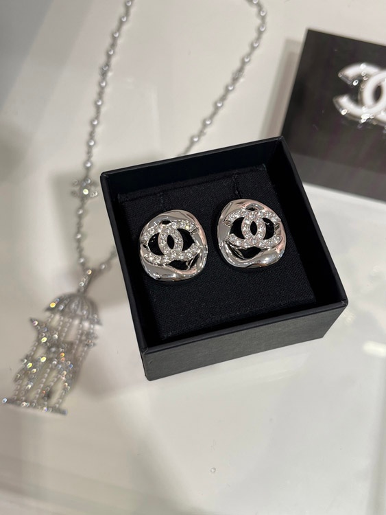 Home > Celine silver full diamond double C hollow square earrings-3901