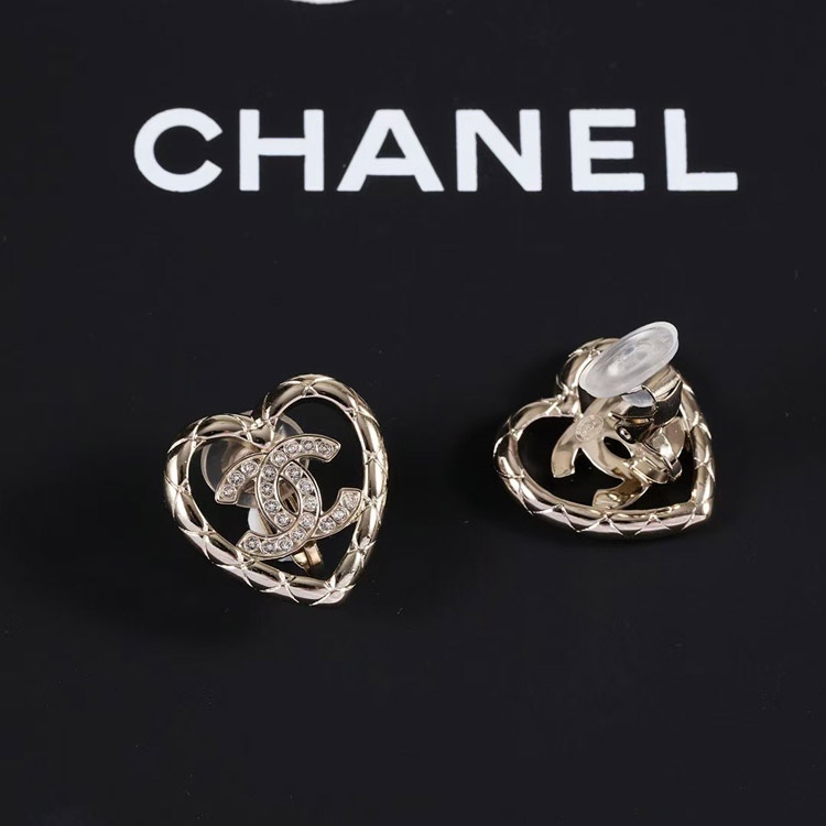 Home > Chanel gold diamond heart hollow double c rhinestone ear clip-3754