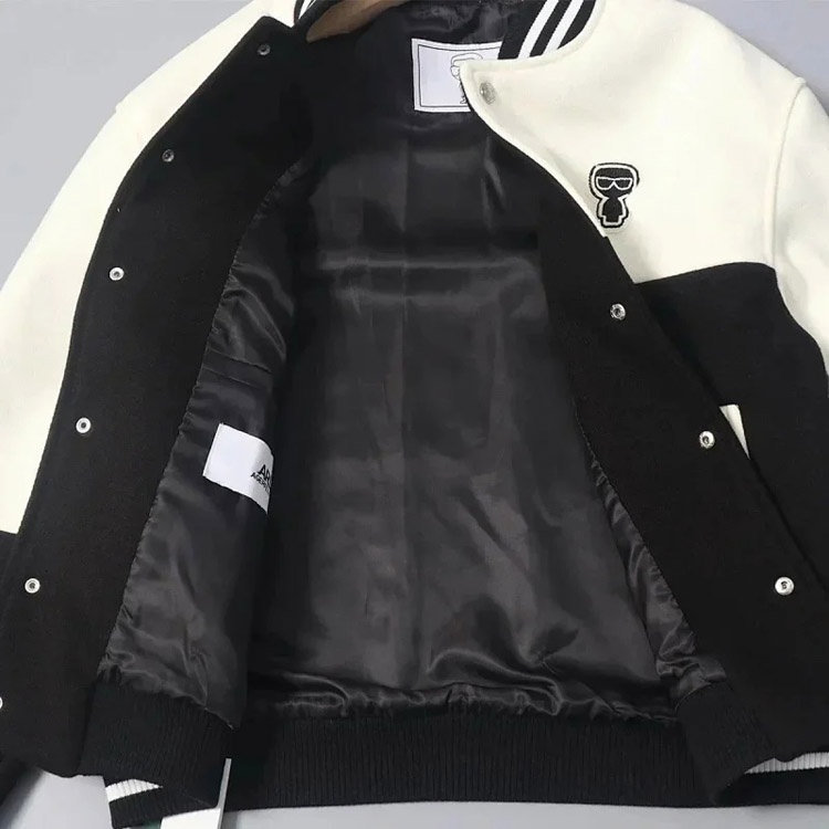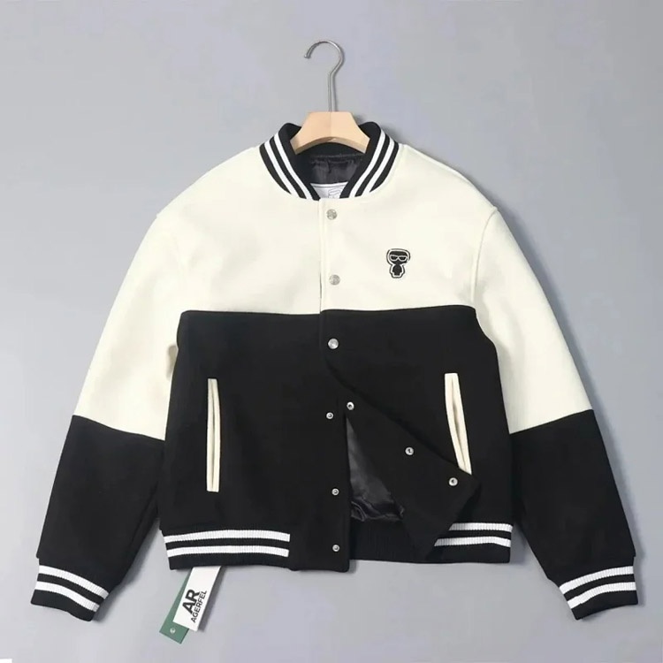 KARL LAGERFELD Color-block Baseball Collar Single-breasted Jacket-4865