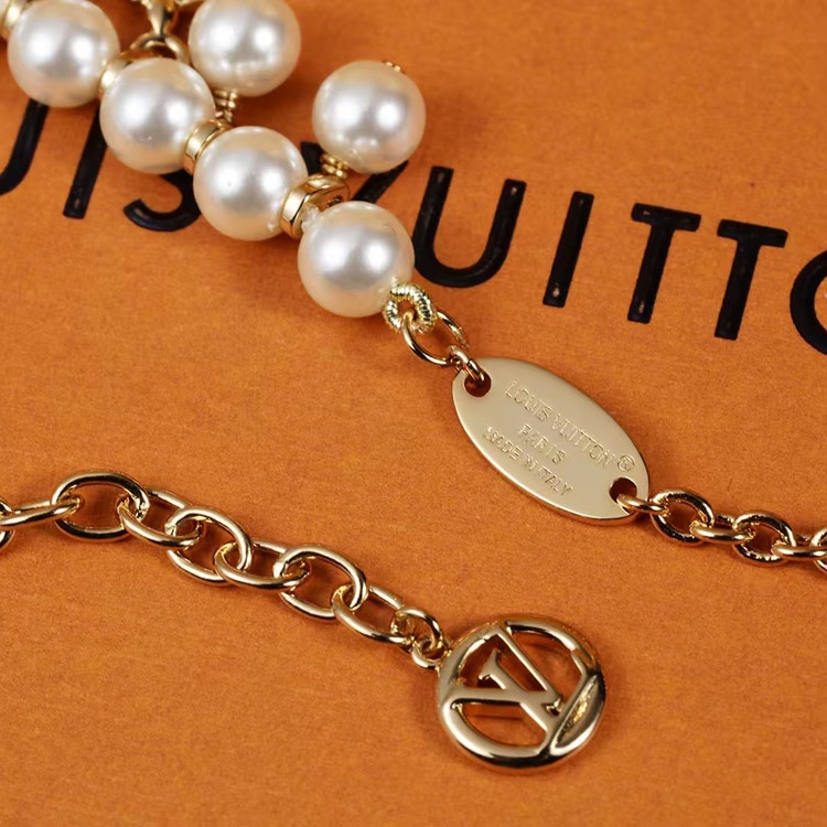 Louis Vuitton LV gold metal fine chain pearl letter flower pendant bracelet-3655