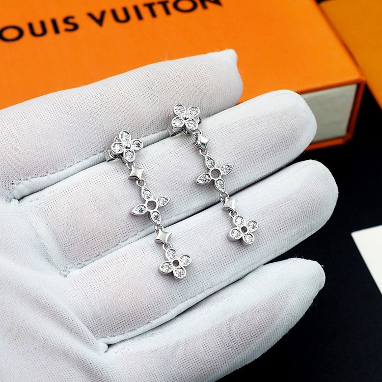 Louis Vuitton LV lace hollow inlaid zircon floral pattern earrings-3534