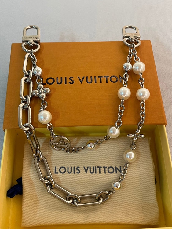 Louis Vuitton LV Letter Flower Pearl Double Chain Bag Belt Chain-3868