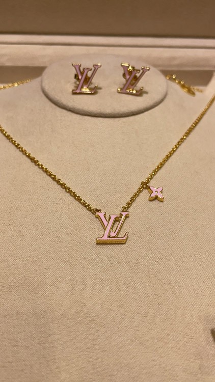 Louis Vuitton LV pink enamel letter necklace-3873