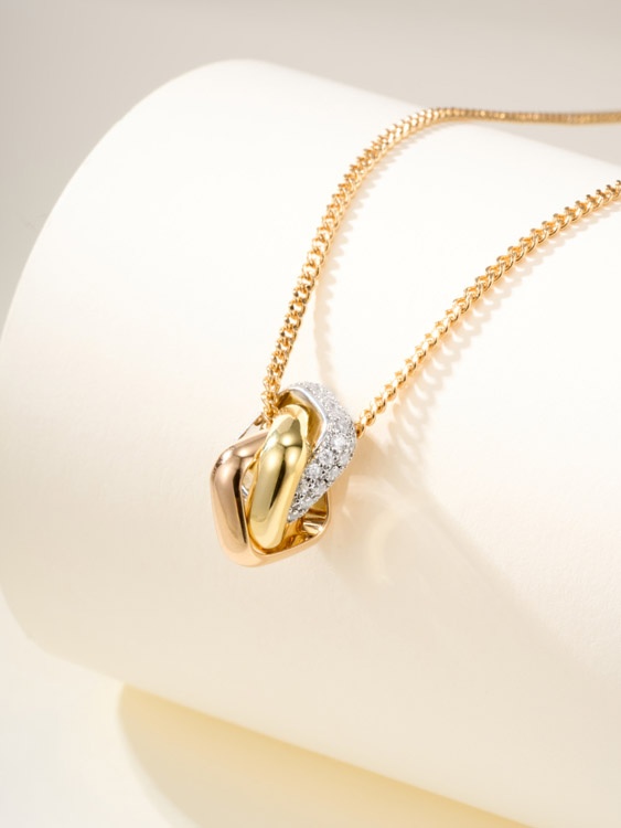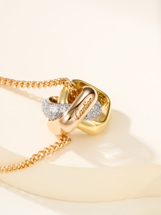 Tiffany cushion-shaped three-color ring diamond necklace-3680